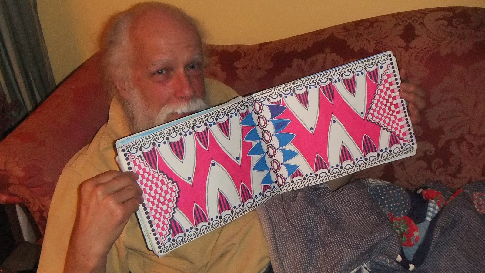 This is my sketchbook, returned from a world tour with the work of other artists and me in it.